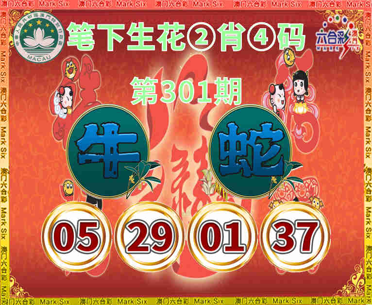 301期:『笔下生花』 👈②肖④码👈【牛蛇】【05.29.01.37】开:00准